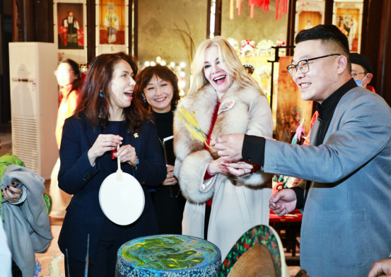 漫步广东会馆,驻华使节们沉浸于京剧文化的独特魅力。西青杨柳青古镇的新春灯会流光溢彩,意合堂会的中华传统武术刚劲有力,玉成号年画坊里,驻华使节们亲手体验年画拓印,在一抹抹喜庆红中,品味地道中国年、浓郁天津味。